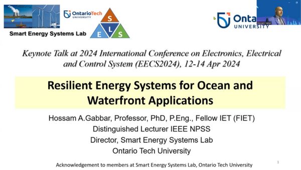 Professor Hossam A. Gaber from Ontario Tech University, Canada, delivered the keynote speech on Resilient Energy and Transportation Infrastructures for Ocean and Waterfront Applications.